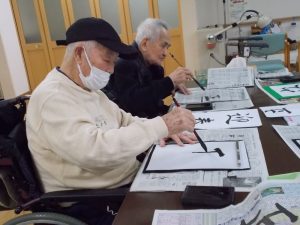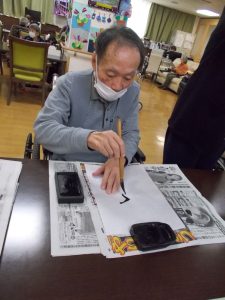 「人に見せれへん~恥ずかしいわぁ」などなど声が飛び交いましたが、いざ!筆が進みだせば・・皆さん黙々と半紙に向かって集中です。