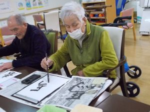 互いに褒め合いながら今年一年の抱負を書にしたため、新年のスタートをきりました。