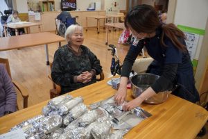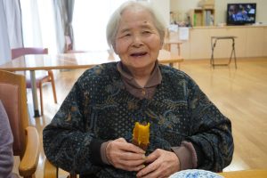 なんと、今回のお芋は新棟の南側の畑で利用者の皆さんと一緒に育て、芋掘りをした、