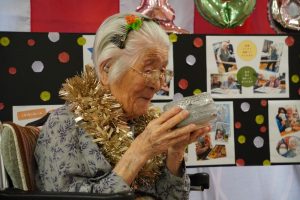 もくせい最高齢、108歳のお誕生日を迎えられたA様のお祝いをしました。