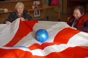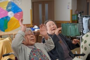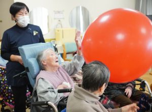 新棟の利用者様で風船バレーボールを行いました。